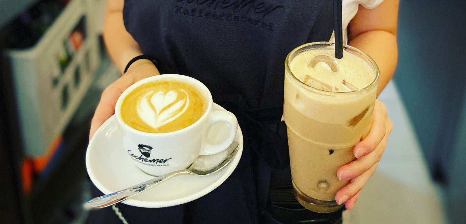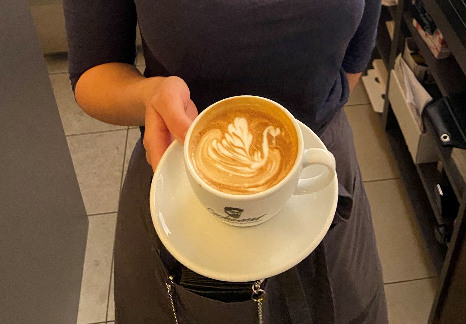 In unserem modern eingerichtetem Café bereitet Ihnen unser Barista traditionell und mit Sorgfalt auf einer Siebträgermaschine ihren Kaffee zu.